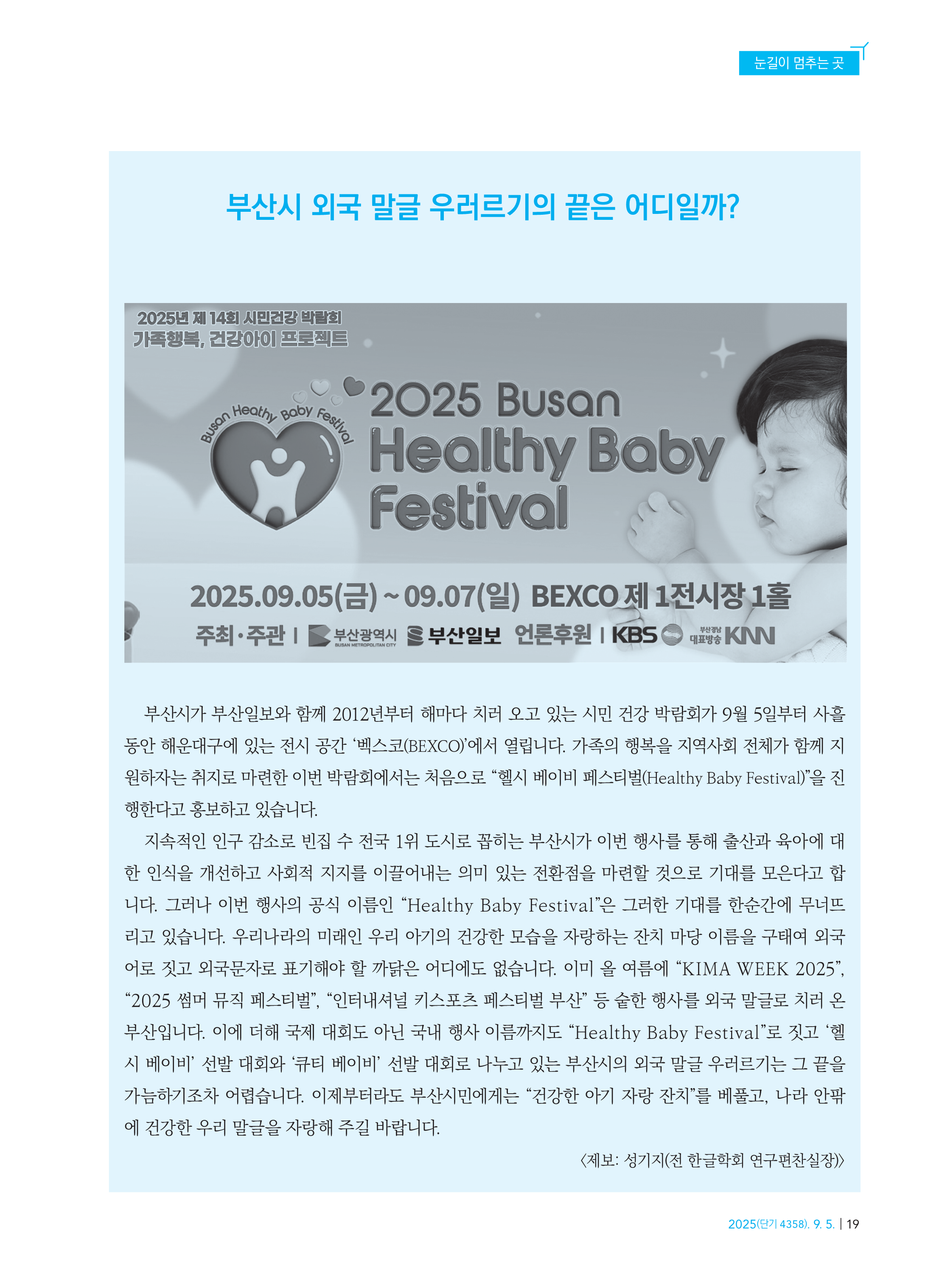 부산시 외국 말글 우러르기의 끝은 어디일까? (한글 새소식 제637호)