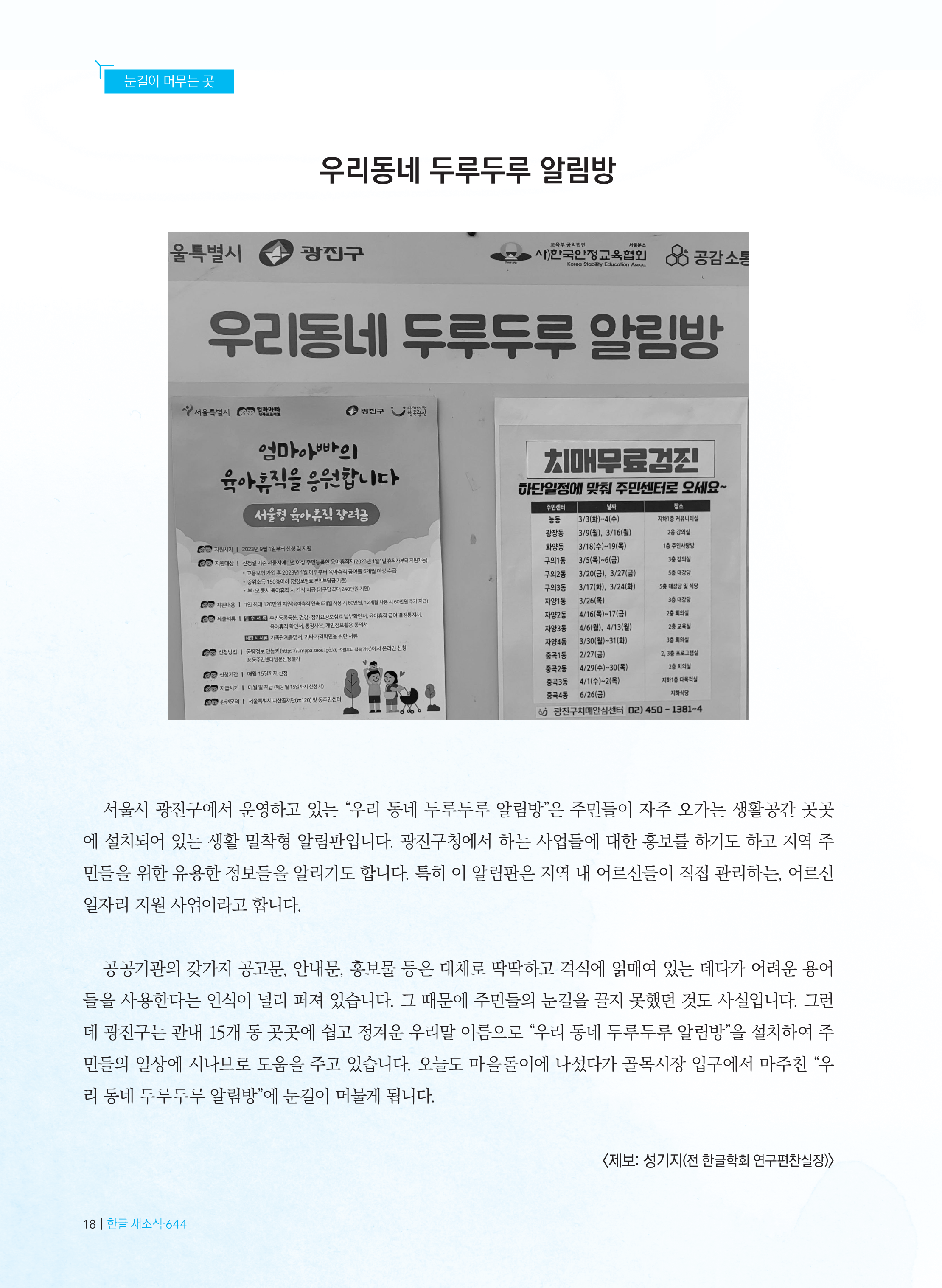 우리동네 두루두루 알림방 (한글 새소식 제644호)