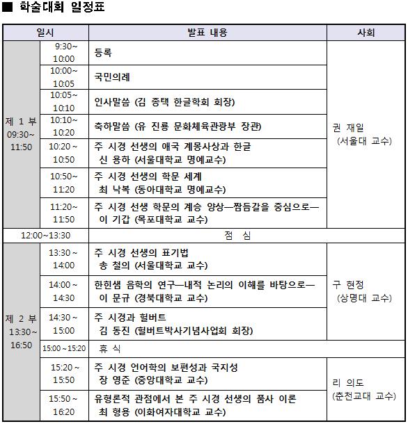 617돌 세종날 기념 <주 시경 선생 100주기 추모 학술대회>