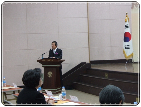 2011년 2월 11일 오후 2시부터 서울기독교청년회관(YMCA, 종로2가) 대강당에서 열린 '한글마루지 조성/광화문 현판 다시 걸기 시민 공청회'의 모습. 김형오 전 국회의장의 격려 말씀을 듣고 있는 모인 사람들(위)과 사회를 맡은 한말글문화협회 이대로 대표(아래)의 모습.