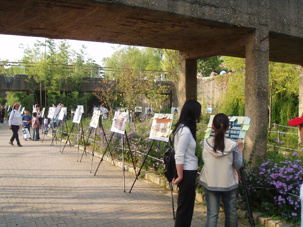 2005년 10월 9일 (일) 오후 1시부터 선유도 공원(양화대교 중간)에서 있었던 한글문화연대 주최 559돌 한글날 기념 '2005 으뜸 한글 온누리에' 행사의 한 모습입니다. 사진은 한글 사진 전시회(한글 무늬, 외국어 남용 사례)의 한 모습입니다. <찍은 이: 꿈돌이(2005.10.9.)>