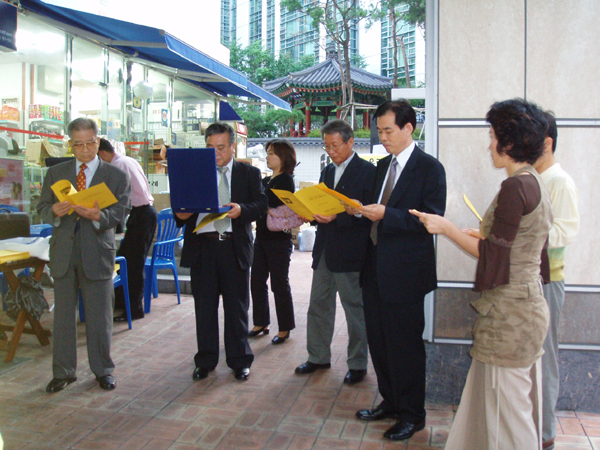 2005년 9월 28일 (수) 오후 5시부터 서울 종로구 내수동 경희궁의 아침 3단지 상가에 있는 '머리에봄'(원장 김미선)에서 2005년 세 번째 아름다운 우리말 가게이름 행사를 하고 있는 모습입니다. <찍은 이: 꿈돌이, 2005년 9월 28일.>