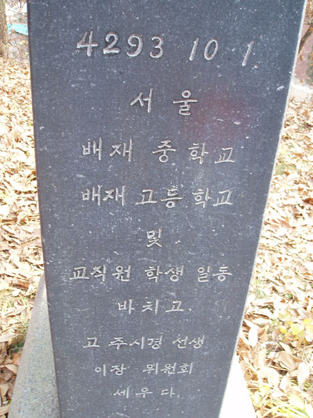 경기도 남양주시 장현리에 있는 한힌샘 주 시경 선생 무덤이 있던 자리를 나타내는 비석입니다. 무덤이 있던 자리는 매우 쓸쓸해 보였습니다. 무덤이 있던 자리를 가로질러 그 지역 주민들이 산을 오르내리느라 길이 나 있어서 더욱 그러하였습니다.